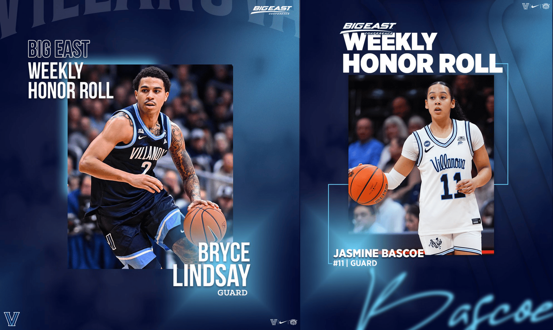 🔼 Roll Call. The backcourt of both Villanova basketball programs were recognized with spots on the BIG EAST Weekly Honor Roll.
