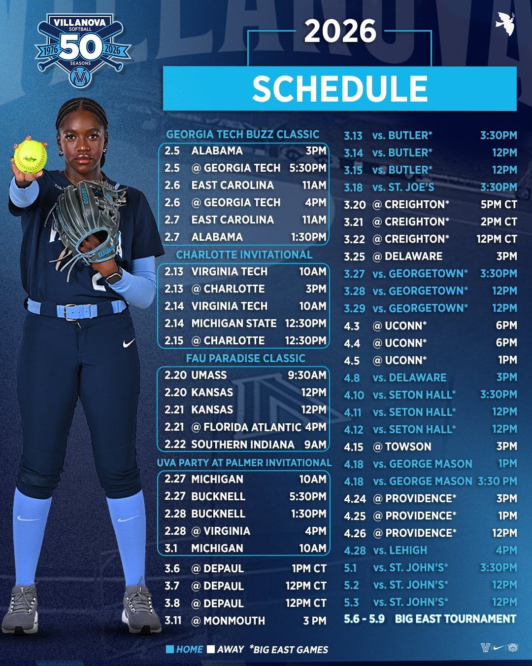 🔼 The Spring Slate. The Big 5-0 is on tap for the Villanova softball program.