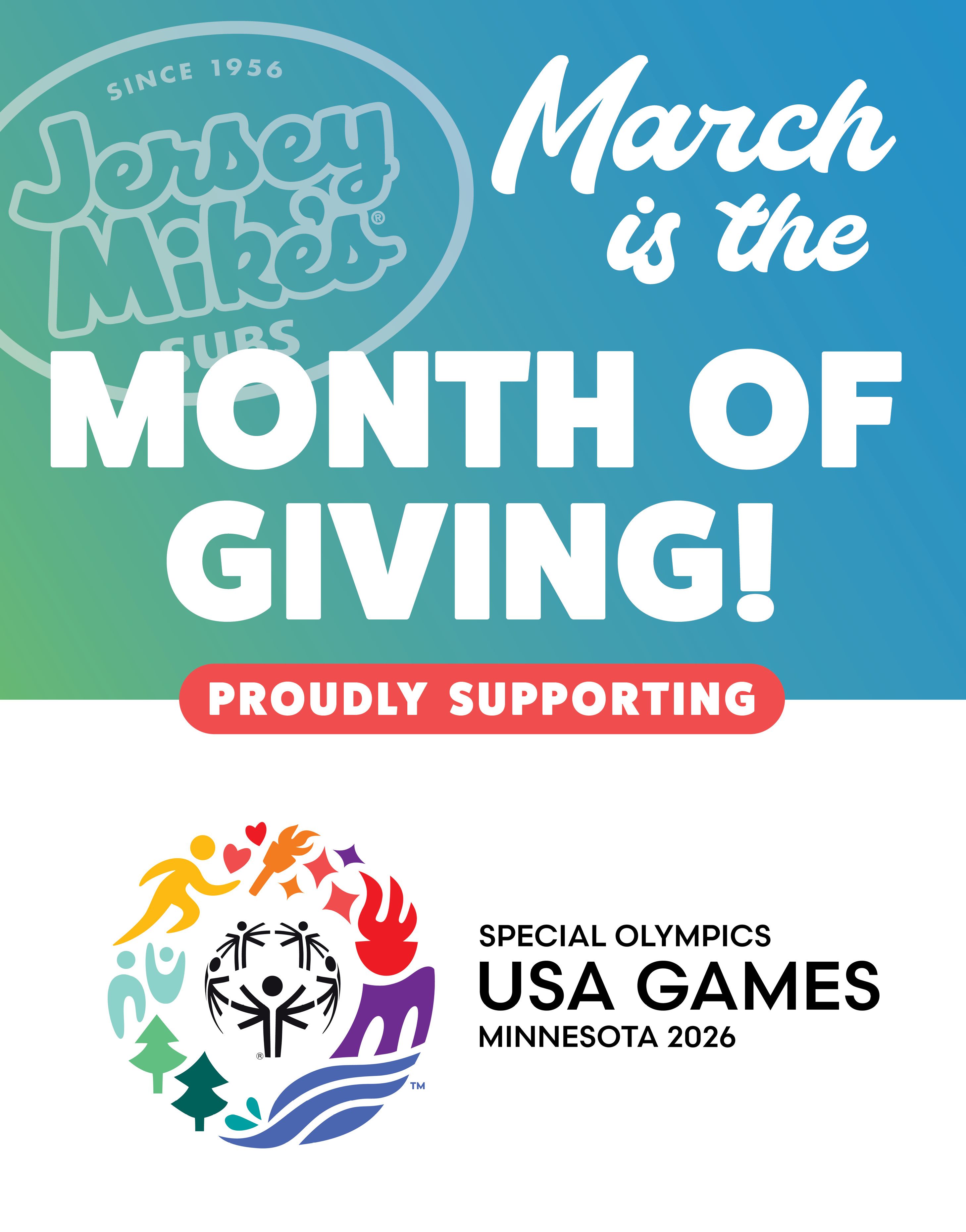 Today’s the day! Order from your local Jersey Mike's in the Philadelphia area for the 16th Annual Day of Giving and support the 2026 Special Olympics USA Games and the local state Programs attending the games. Every dollar spent today, March 25, goes to the organization!